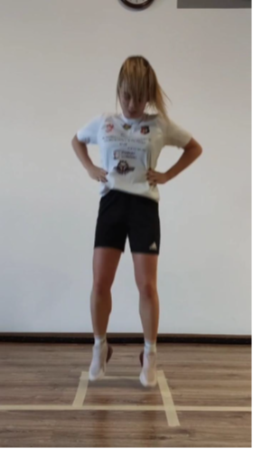 – polven valgus laskeutumisen aikana,