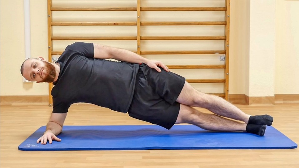 - Trunk Lateral Endurance Test mittaa sivulihasten kestävyyttä, mukaan lukien poikittaiset vatsalihakset, vinot vatsalihakset, quadratus lumborum ja erector spinaet. Tämä ajoitettu testi sisältää staattisia, isometrisiä lihasten supistuksia vartalon molemmin puolin selkärangan vakauttamiseksi. Testi suoritetaan siten, että osallistuja makaa kyljellään, nostaa lantiotaan ja tukee ruumiinpainoaan kyynärpäässä ja jaloissa. Tämä testi suoritetaan kehon molemmille puolille. (kuva 2)